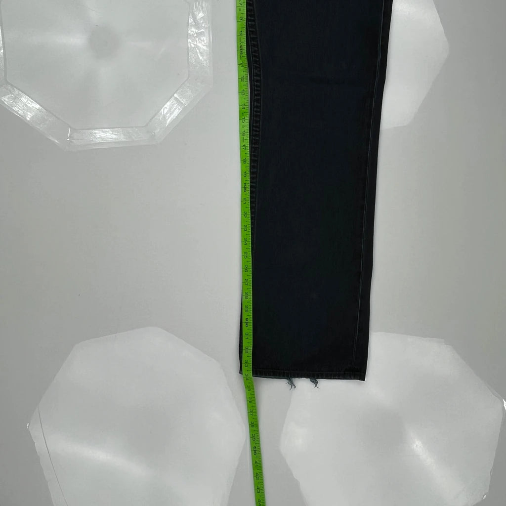 Dark Wash Jeans With Contrast Stitching, Minor Fraying At Hem