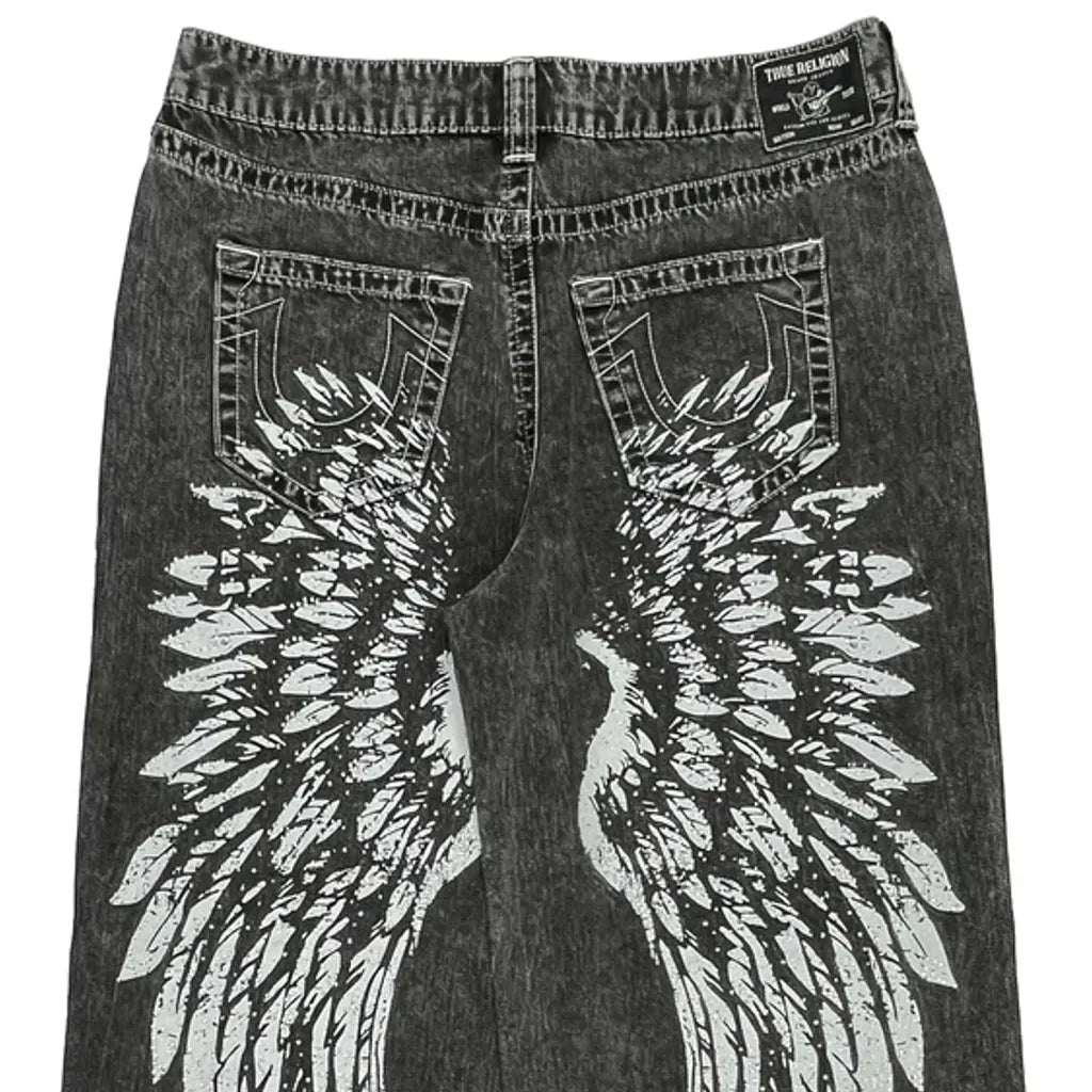 True Religion Graphic Jeans - 37W 24L Grey Cotton