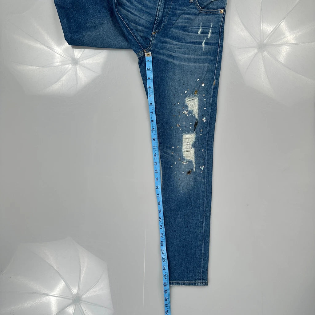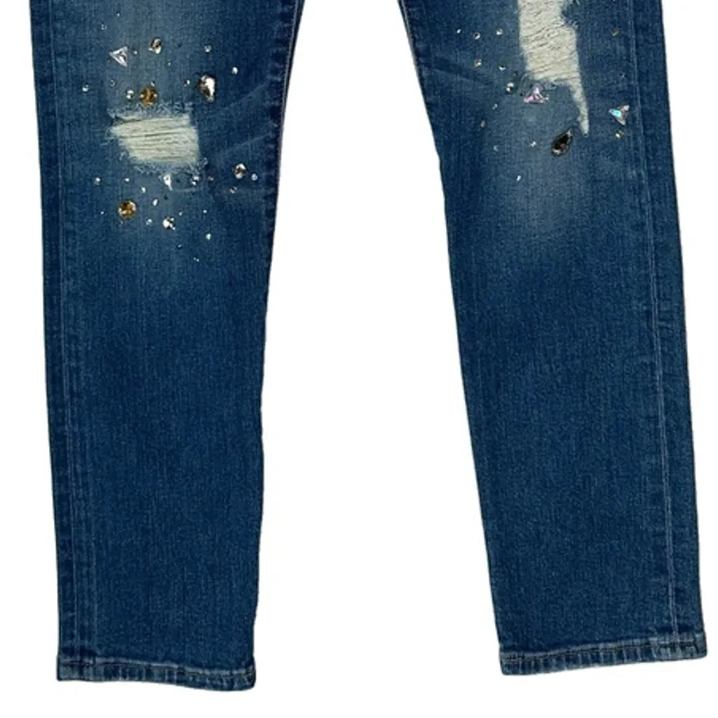 Distressed Jeans With Studded Embellishments