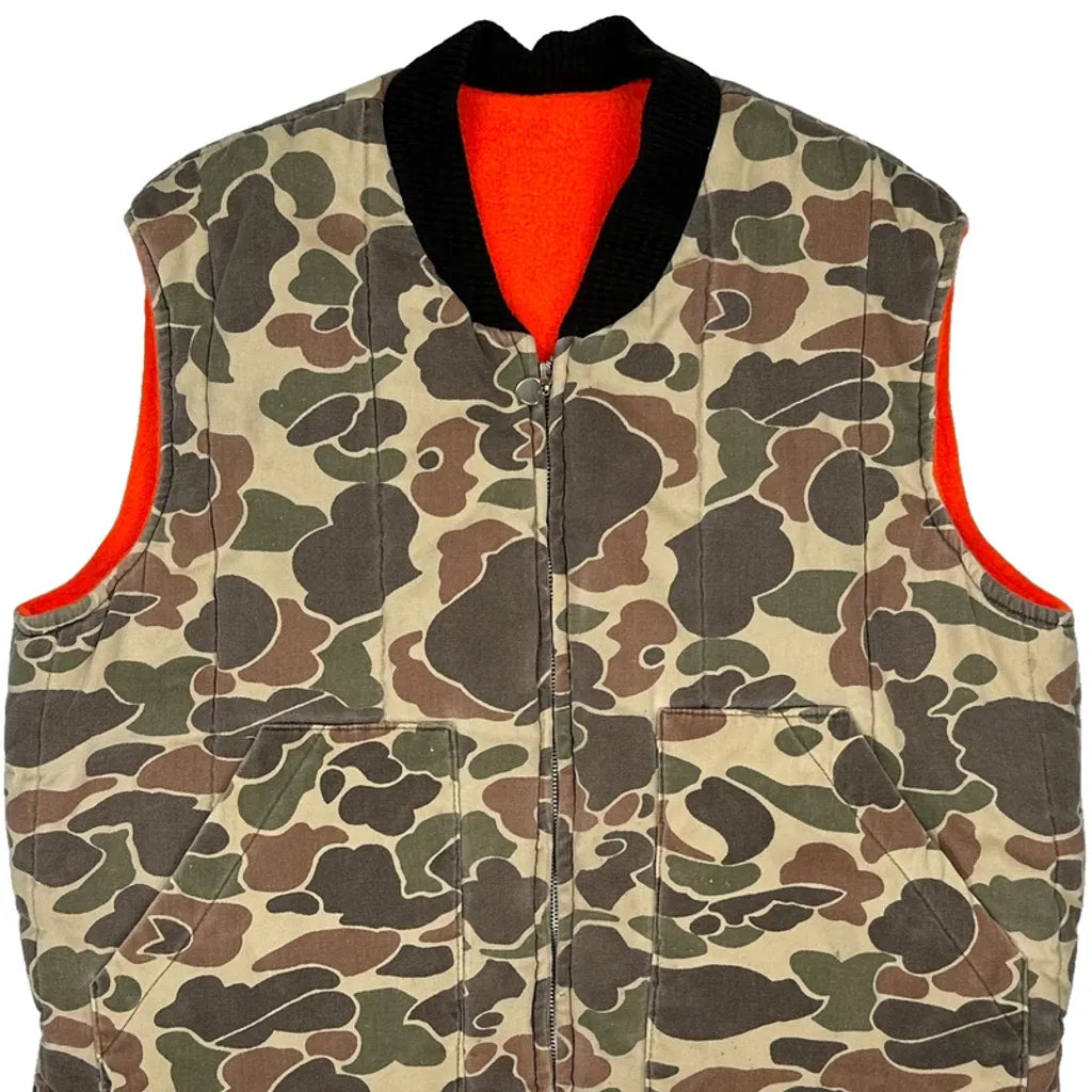 Reversible Camo And Orange Gilet With Zipper Closure