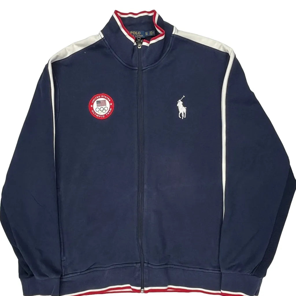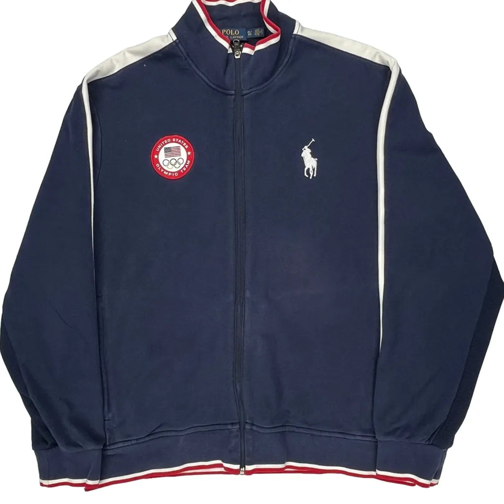 USA Olympics Polo By Ralph Lauren Graphic Track Jacket - XL Navy Polyester