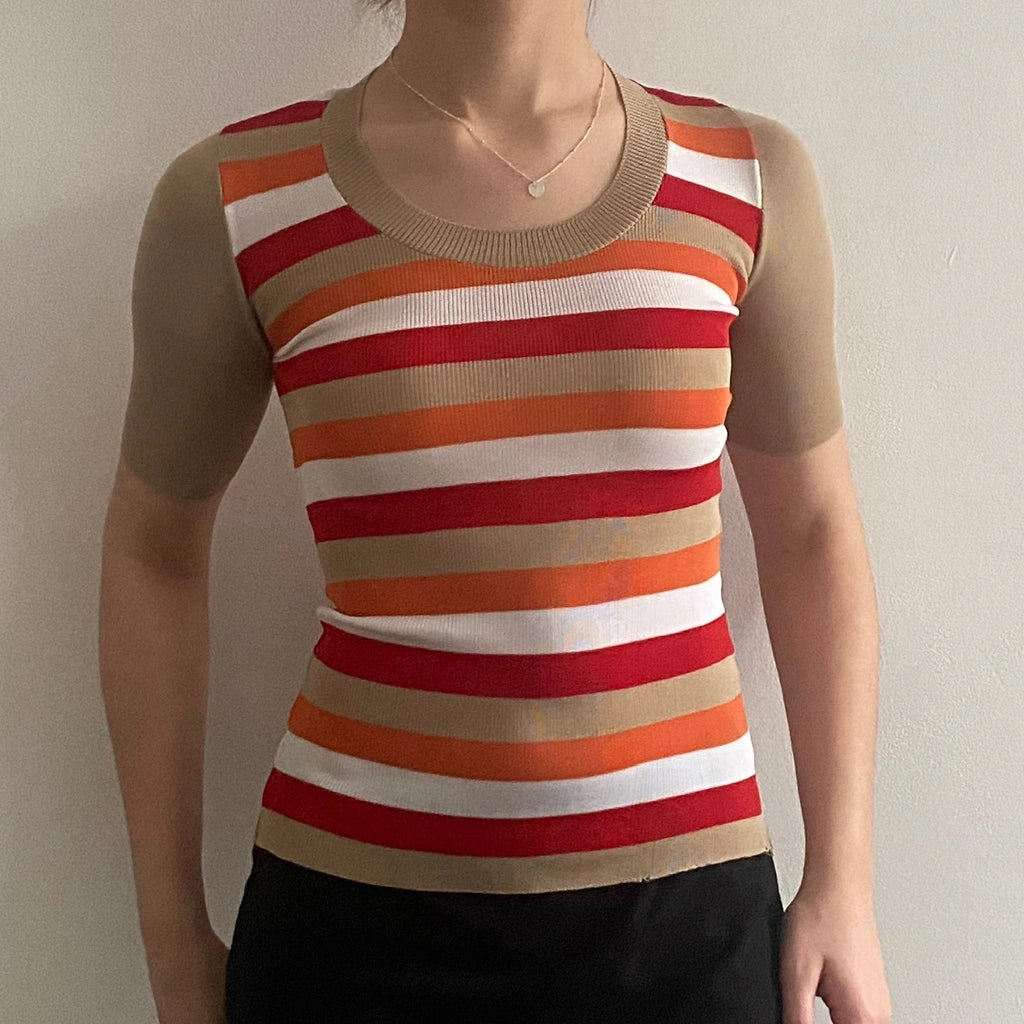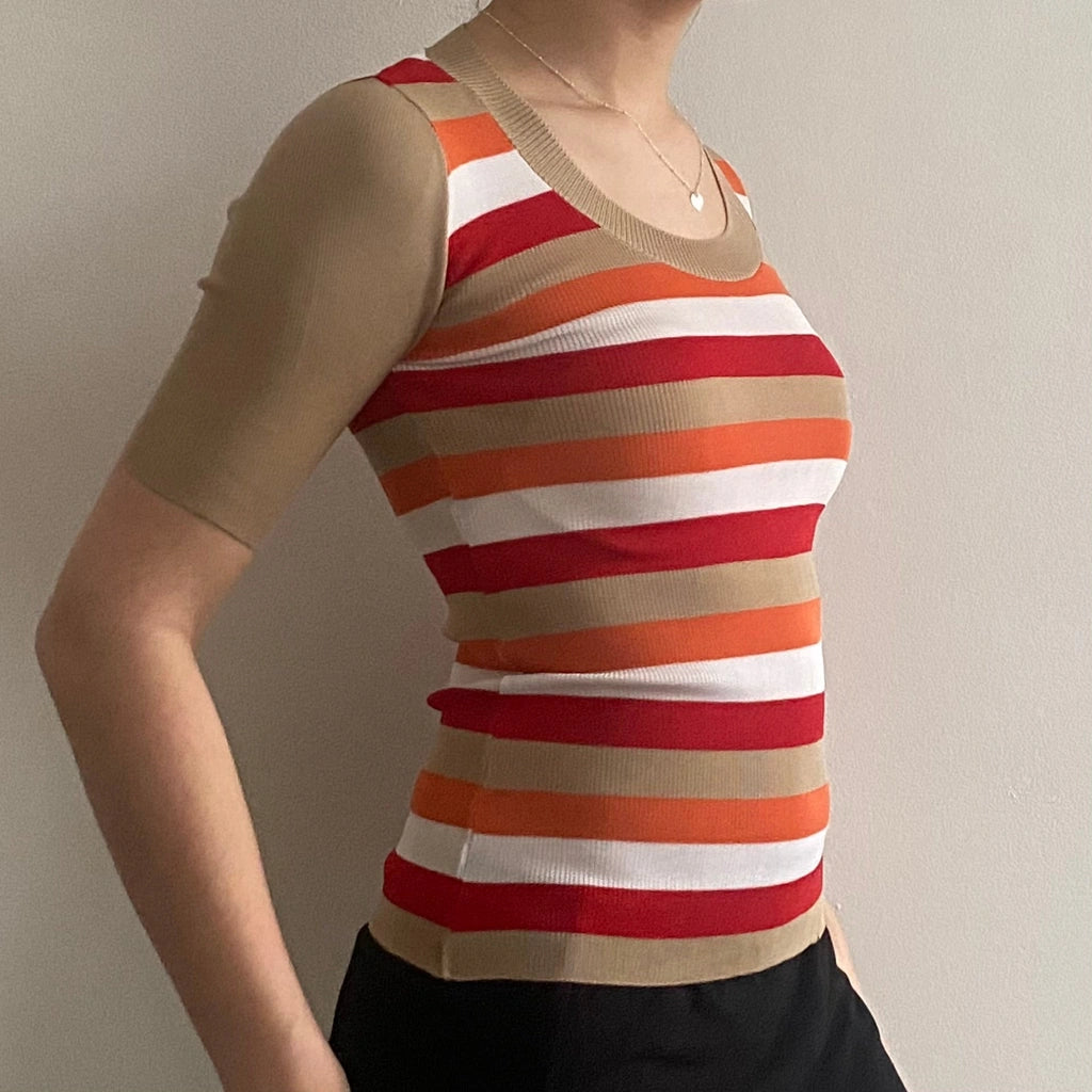 1970s Fauler Striped Top - 2XS Beige Viscose Blend