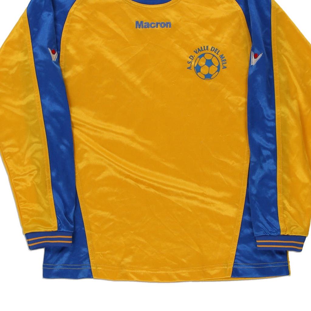 Vintage Age 14 yellow Macron football shirt, fits xx-small.
