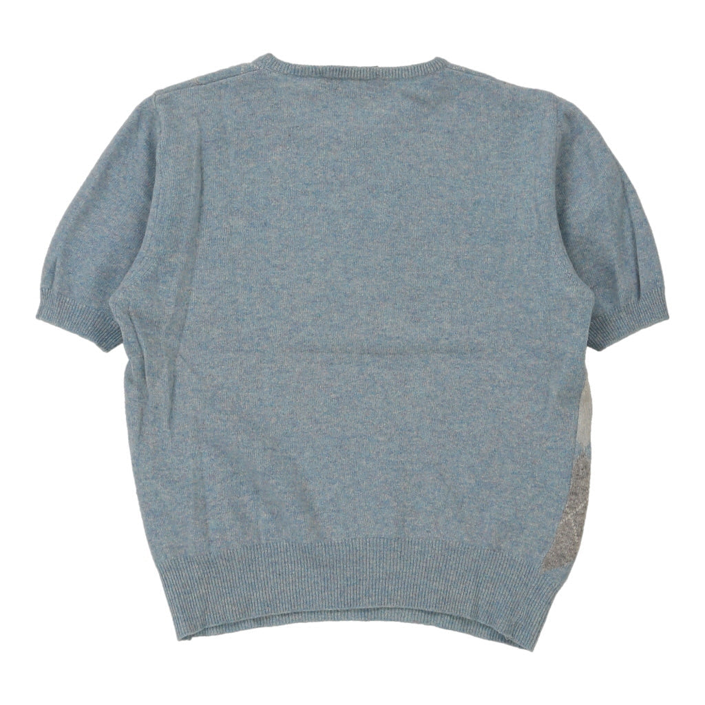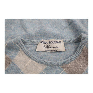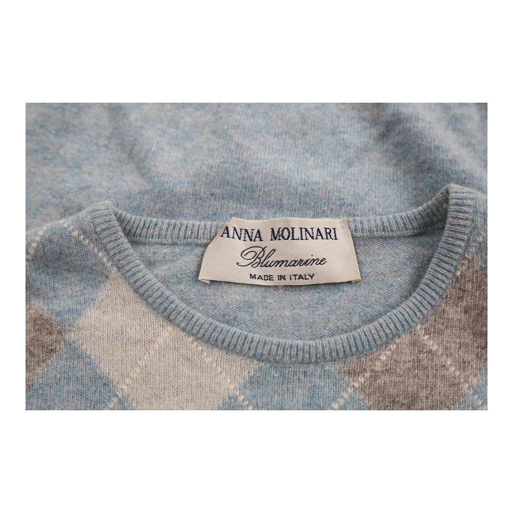 Anna Molinari Blumarine Argyle Top - Medium Blue Cashmere Blend