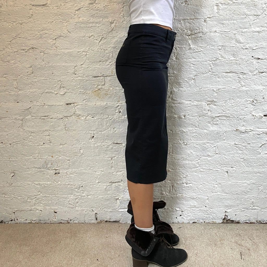 Vintage Armani Jeans navy midi skirt, fits a UK size 14.