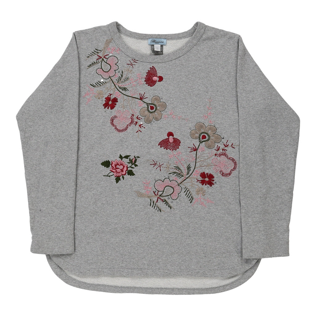 Blumarine Embroidered Sweatshirt - XL Grey Cotton Blend