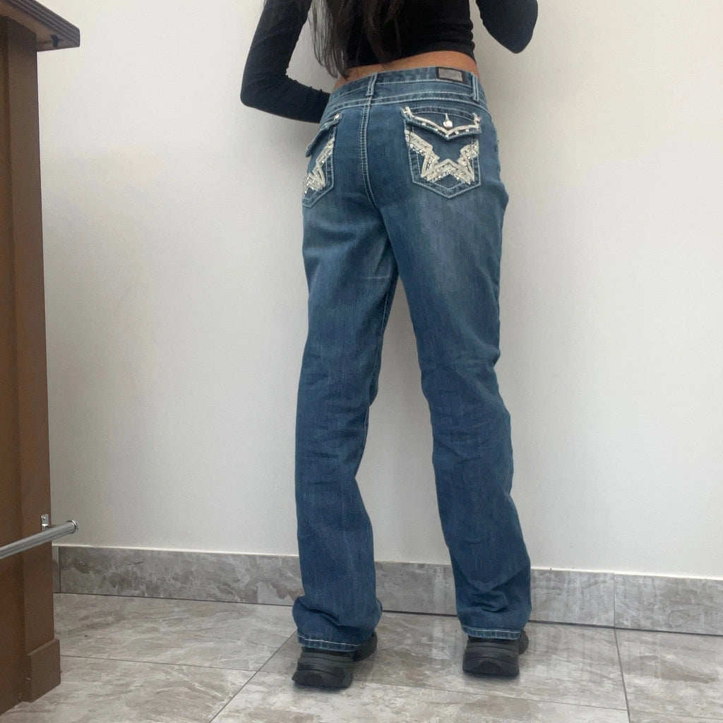 Vintage Earl Jean blue jeans, fit a UK size 10 - low waisted with a 32" waist.