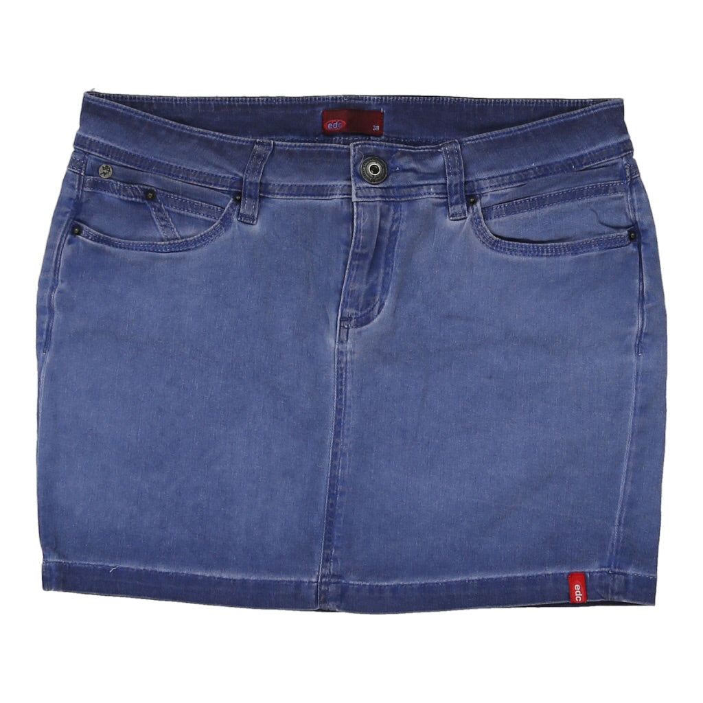Edc Denim Skirt - 32W UK 12 Blue Cotton