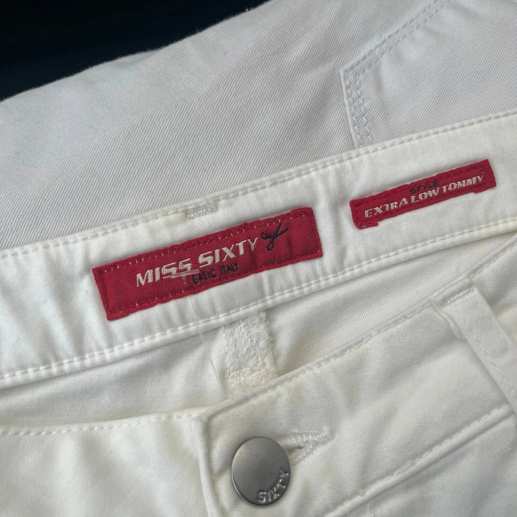 Vintage Miss Sixty Extra Low Tommy white trousers, fit a UK size 4 - low waisted with a 27" waist.