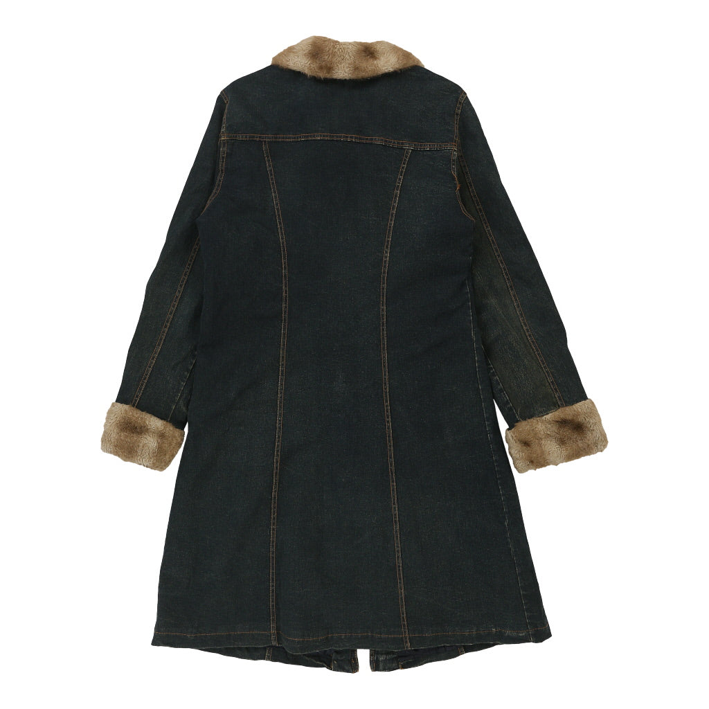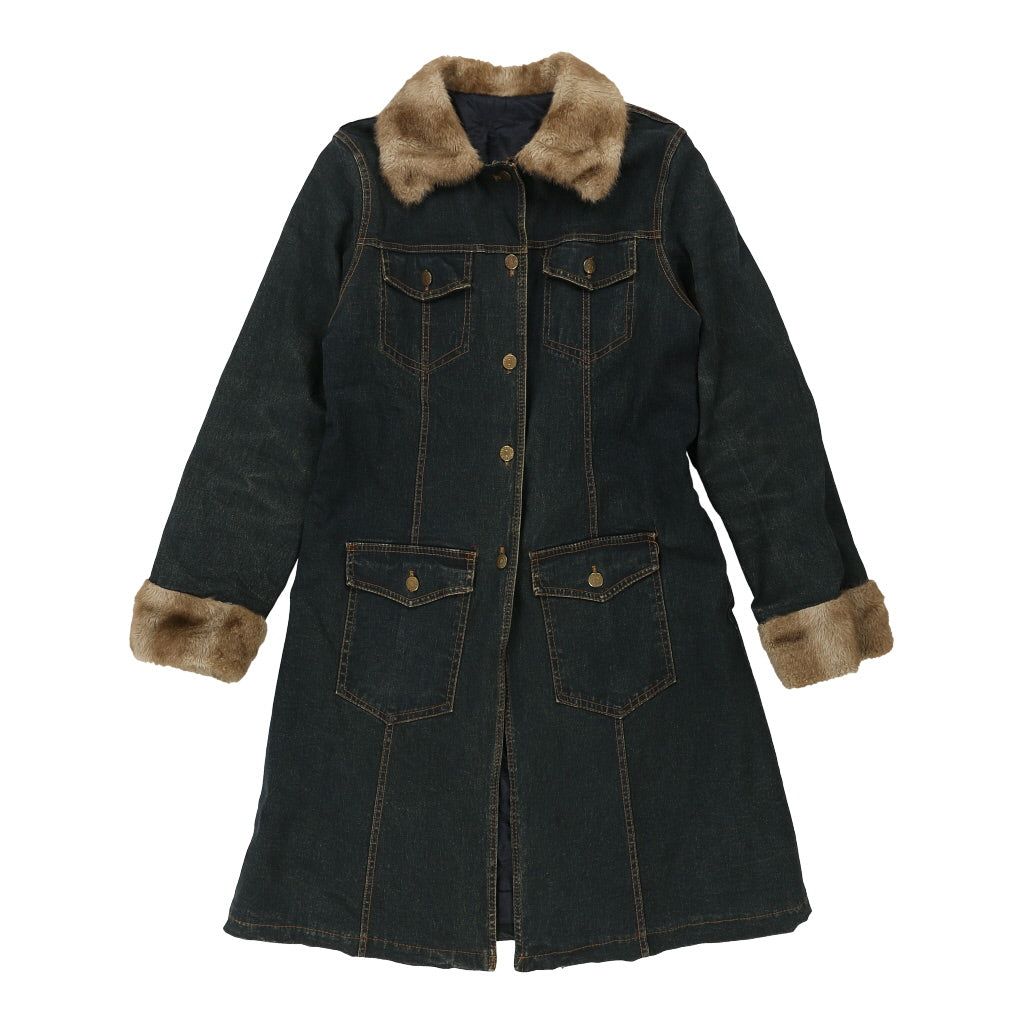 Faux Fur Trim Unbranded Denim Jacket - Medium Dark Wash Cotton Blend