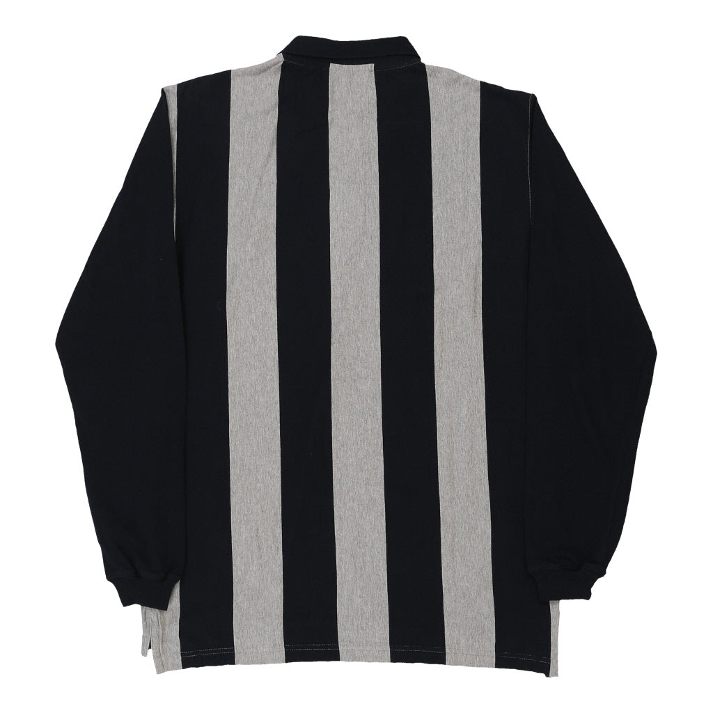 Hanes Striped Long Sleeve Polo Shirt - Large Black Cotton
