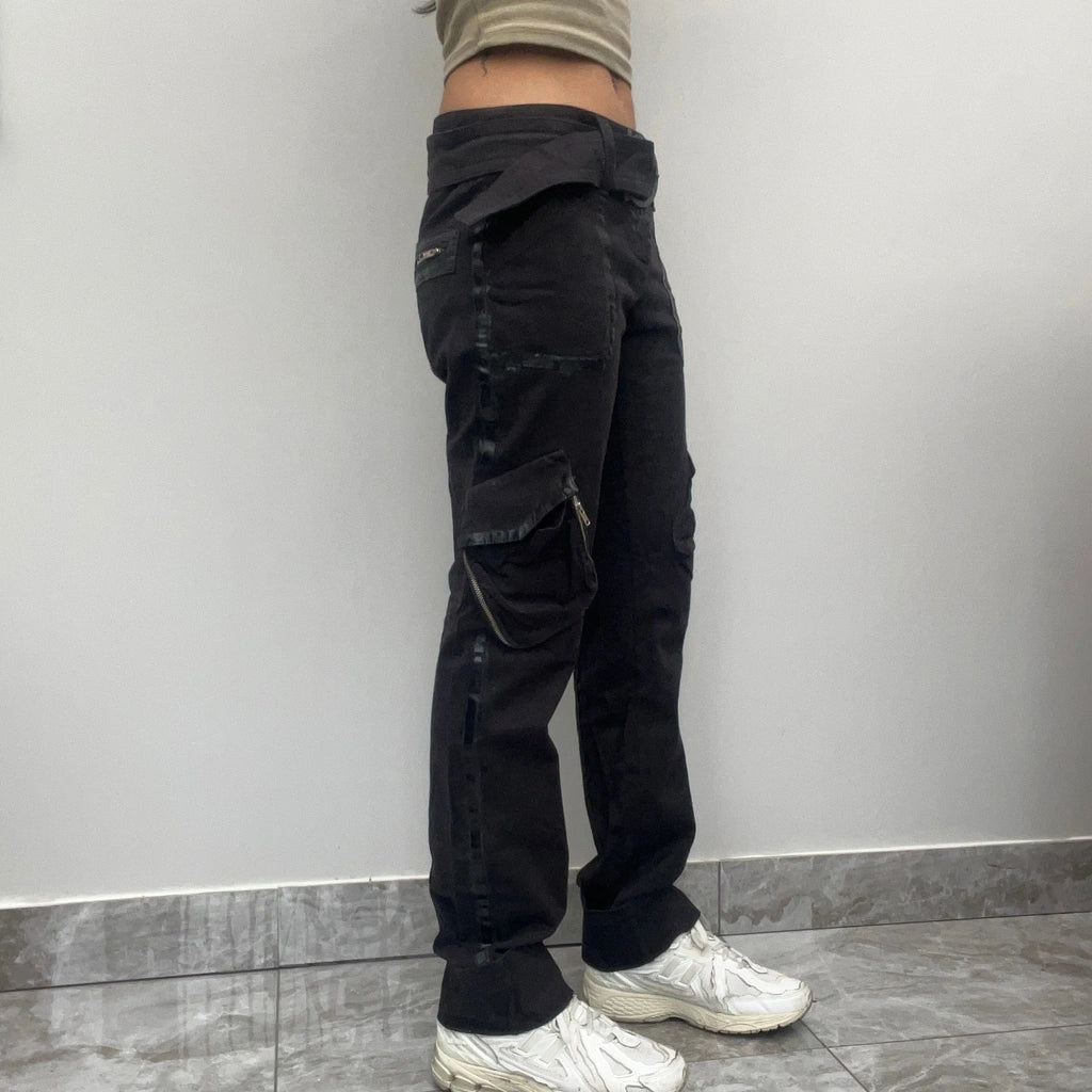 Vintage Lazzerini Tiziana black cargo trousers, fit a UK size 8 - low waisted with a 30" waist.