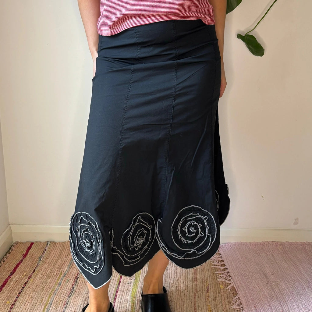 Le Piccinotti Embroidered Midi Skirt - 26W UK 6 Black Cotton