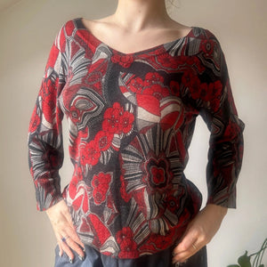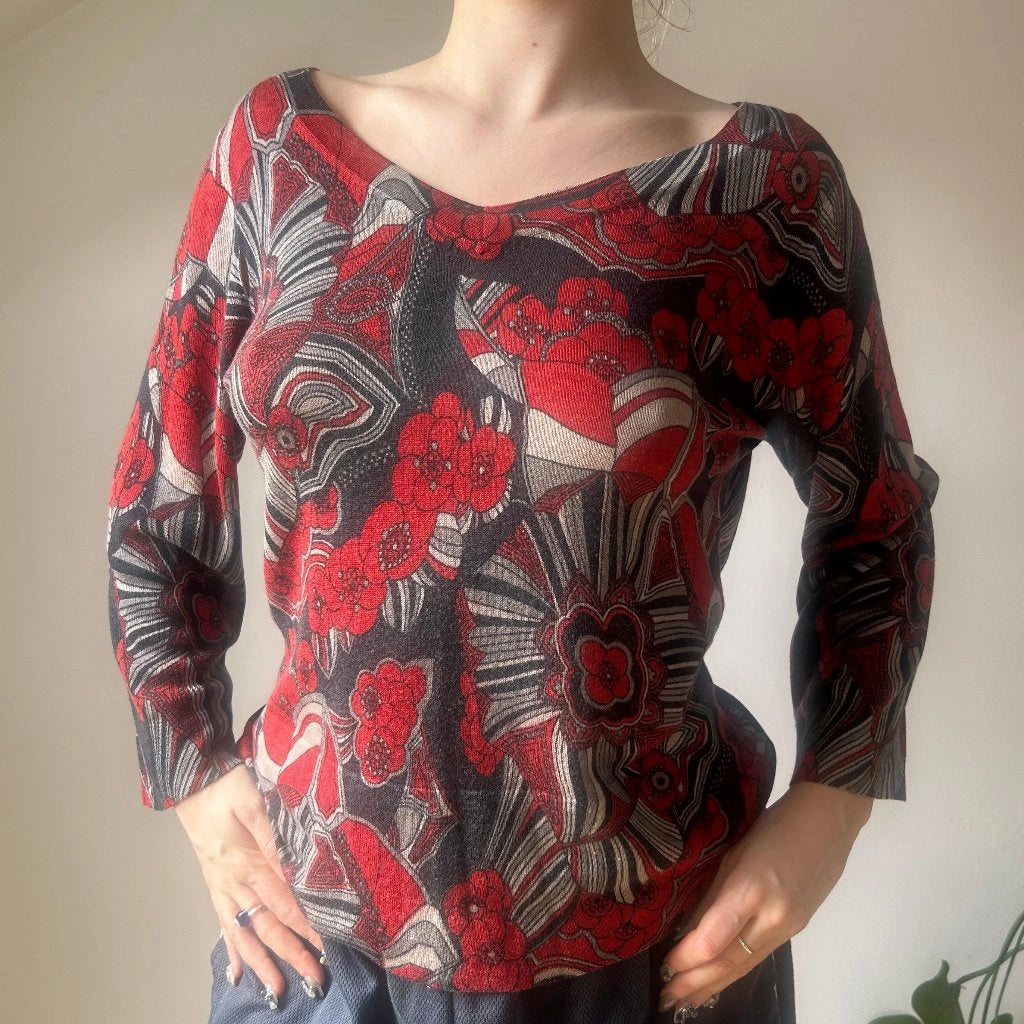 Les Copains Floral Jumper - Large Red Silk Blend