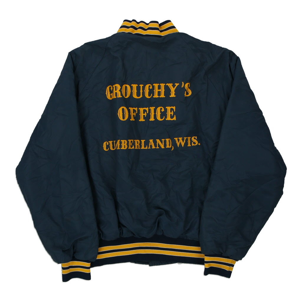 Vintage Made in USA Grouchy's Office navy Dunbrooke varsity jacket, fits medium.