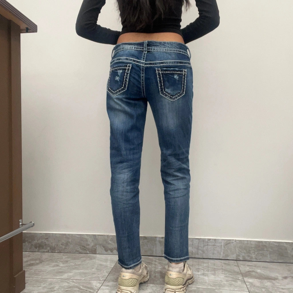 Maurices Embroidered Jeans - 31W UK 10 Dark Wash Cotton