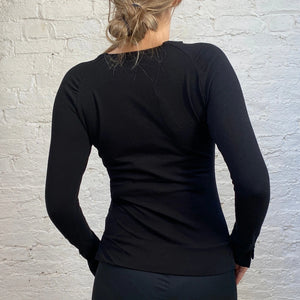 Nolita V-neck Long Sleeve Top - Small Black Cotton Blend