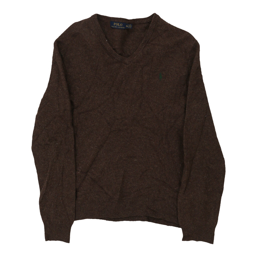 Ralph Lauren V-neck Jumper - XL Brown Wool
