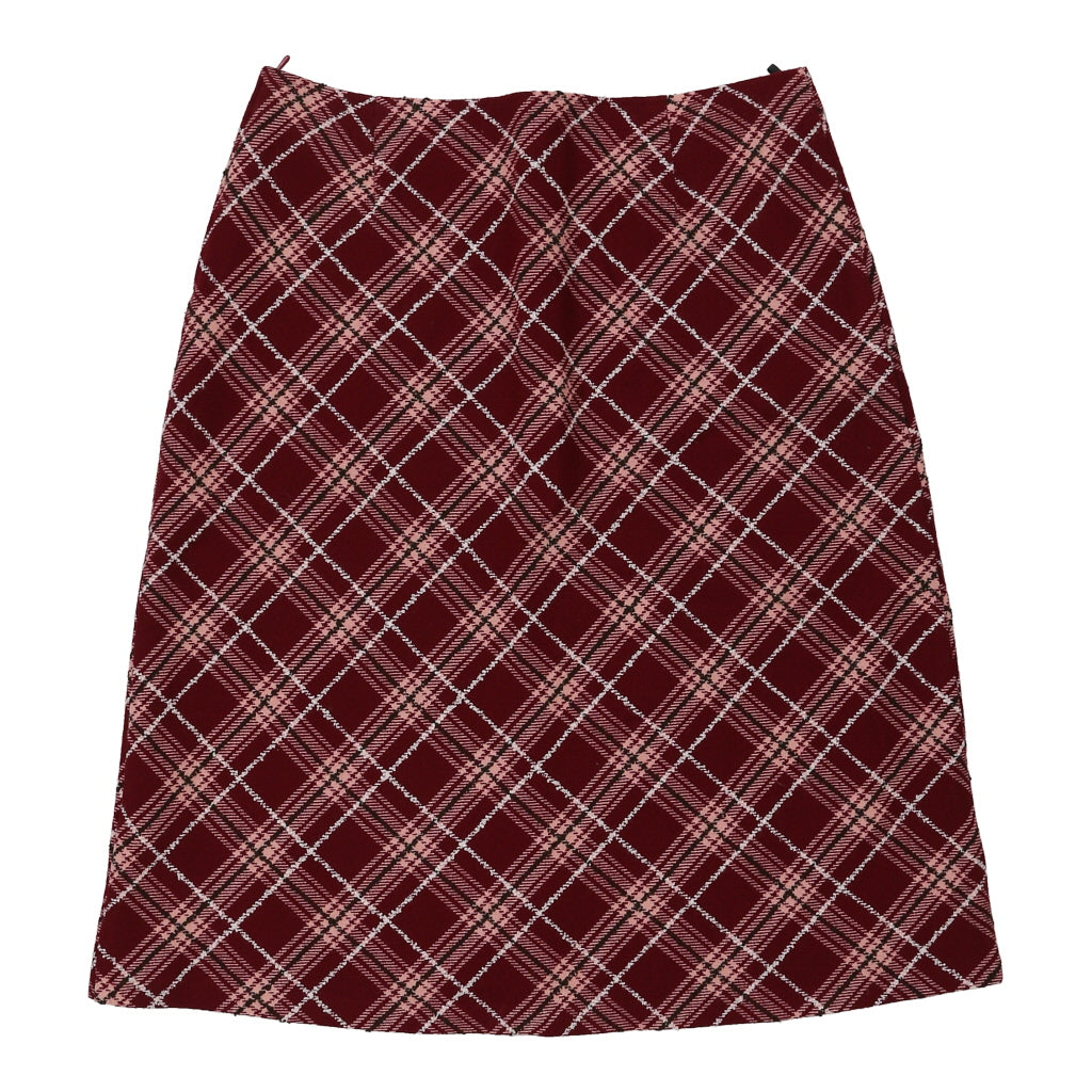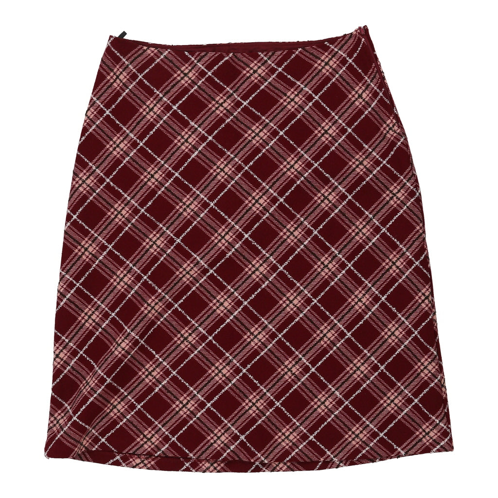 Sisley Checked Midi Skirt - 32W UK 12 Red Acrylic Blend
