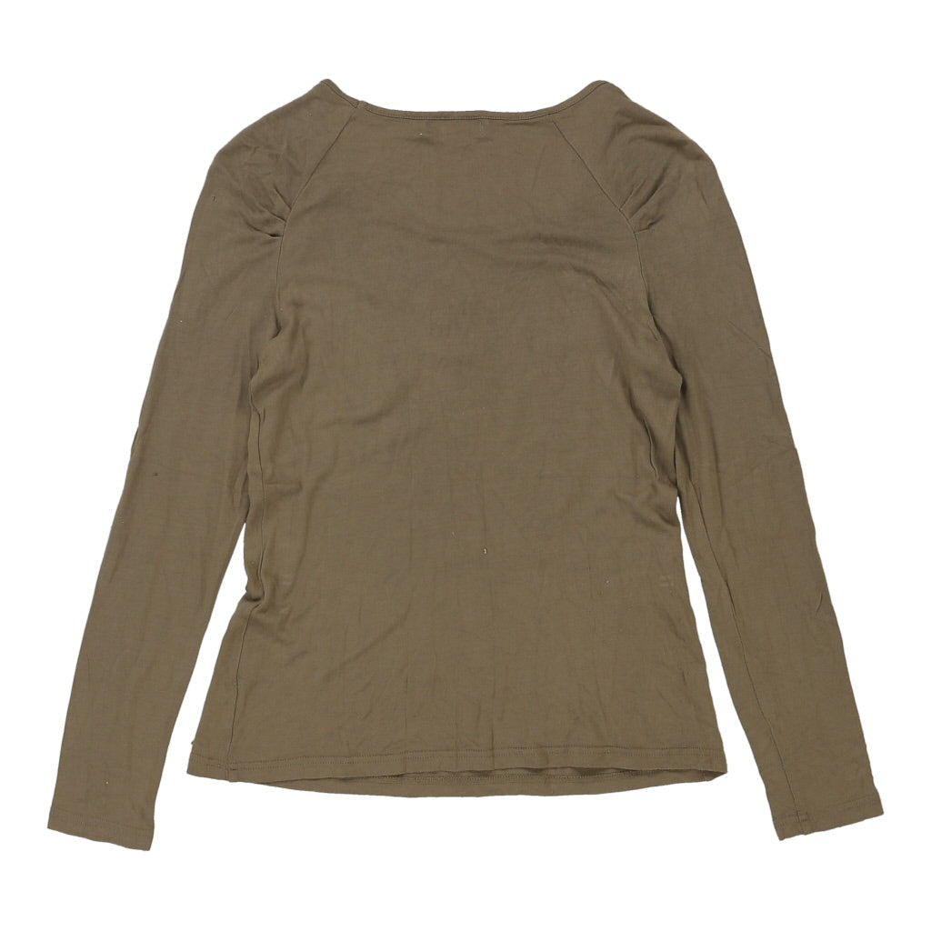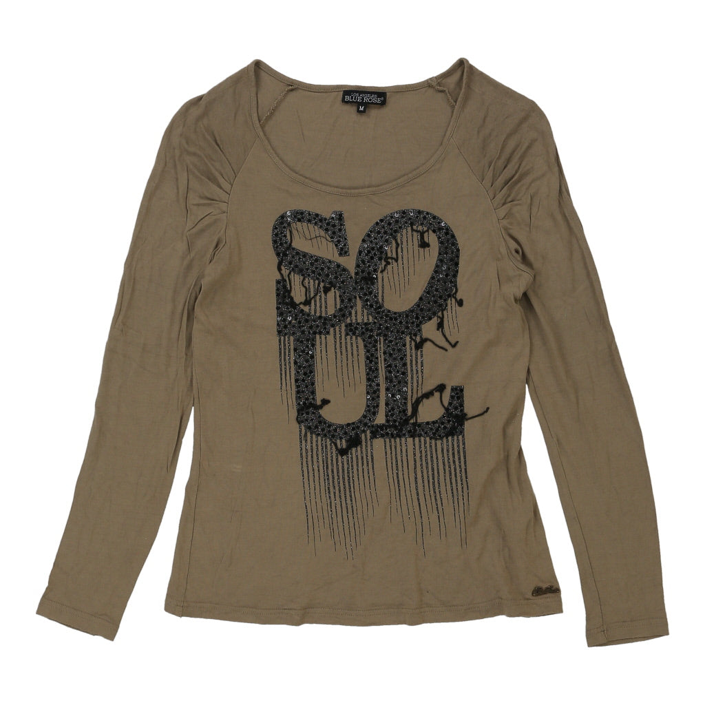 Soul Blue Rose Graphic Long Sleeve Top - Medium Khaki Cotton