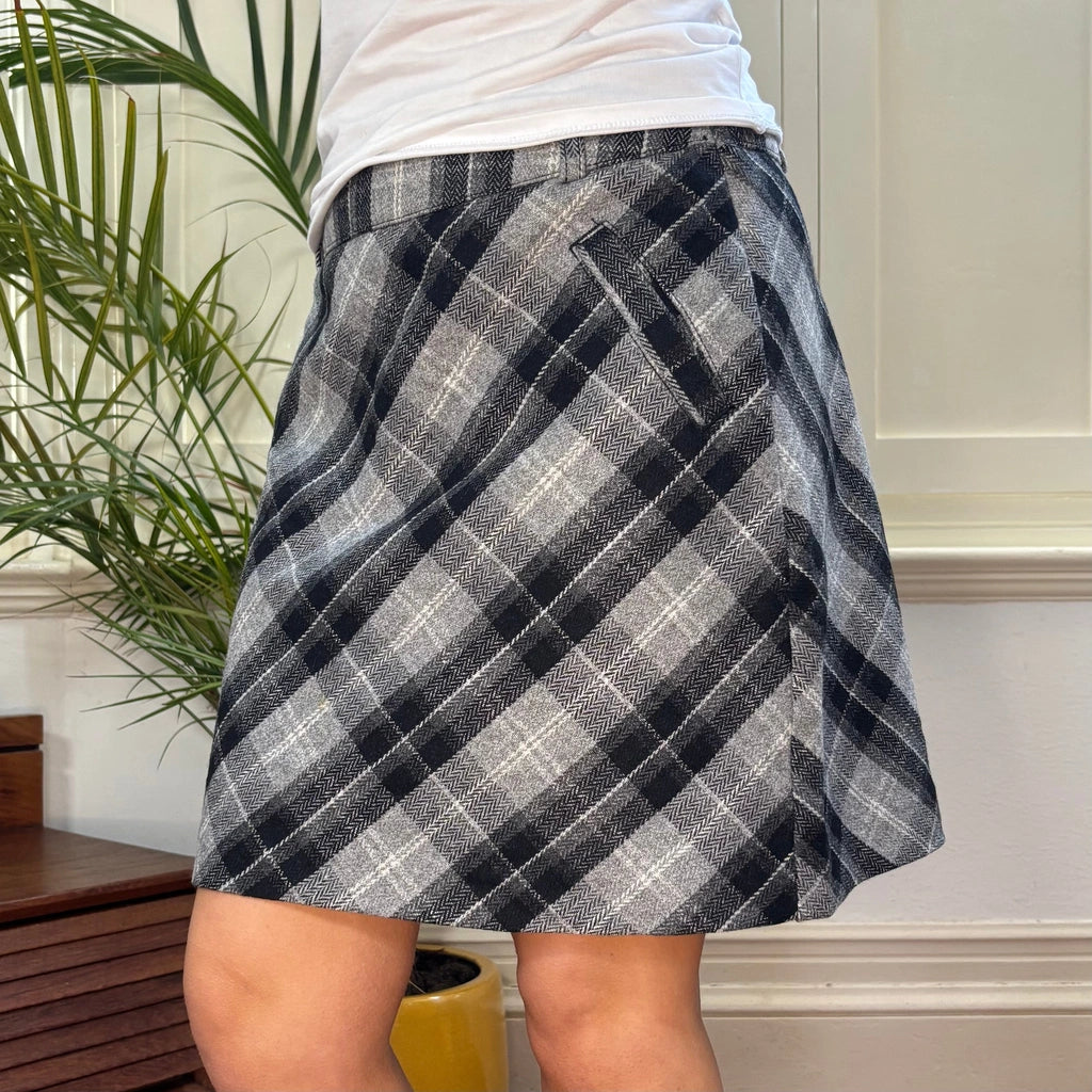 Street One Checked Mini Skirt - 30W UK 10 Grey Wool Blend