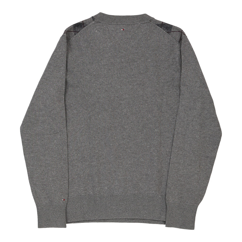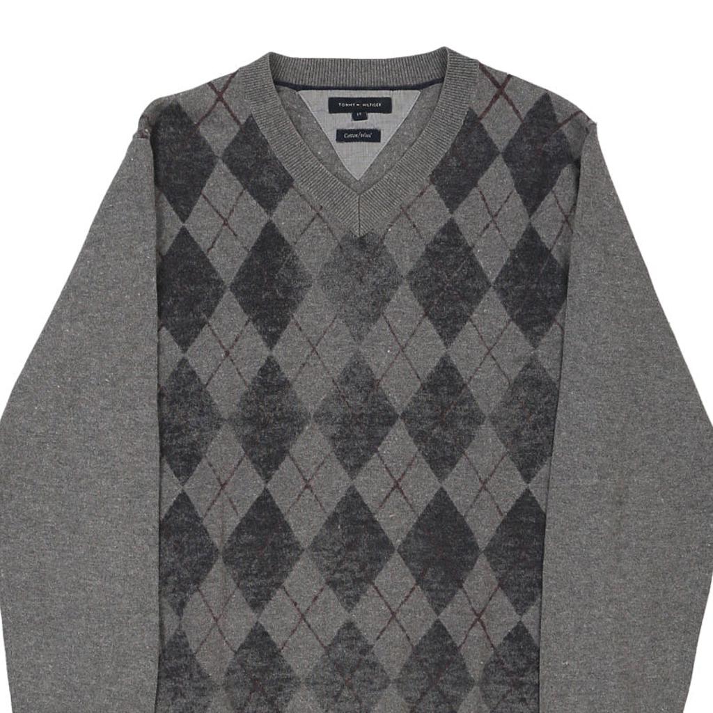 Tommy Hilfiger Argyle Jumper - Large Grey Cotton