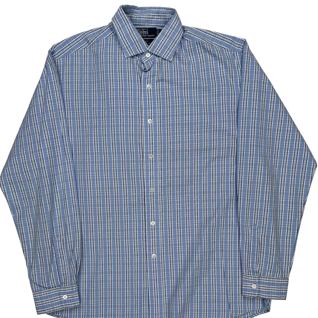 Westerton Italian Broadcloth Polo By Ralph Lauren Checked Shirt - Large Blue Cotton