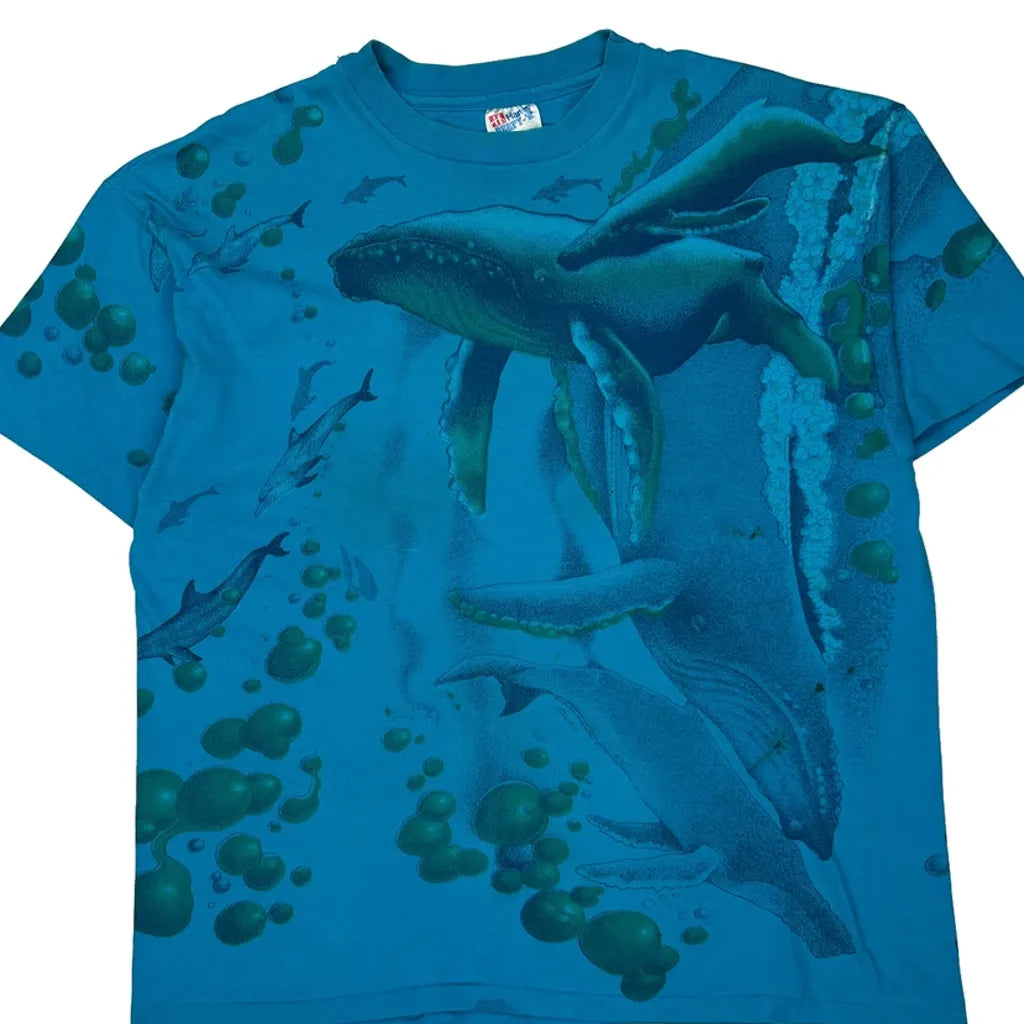 Whale Graphic Hanes Graphic T-Shirt - XL Blue Cotton
