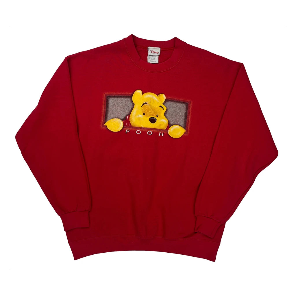 Winnie The Pooh Disney Cartoon Sweatshirt - Large Red Cotton Blend