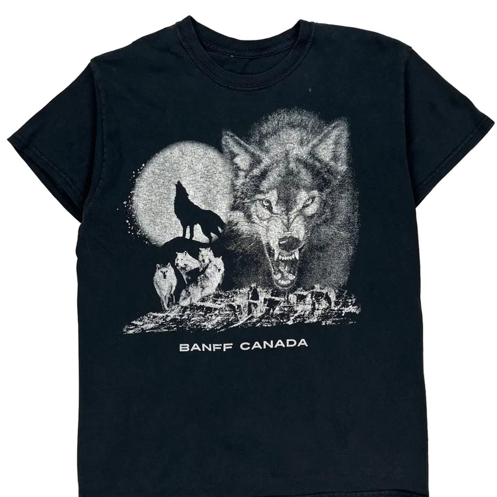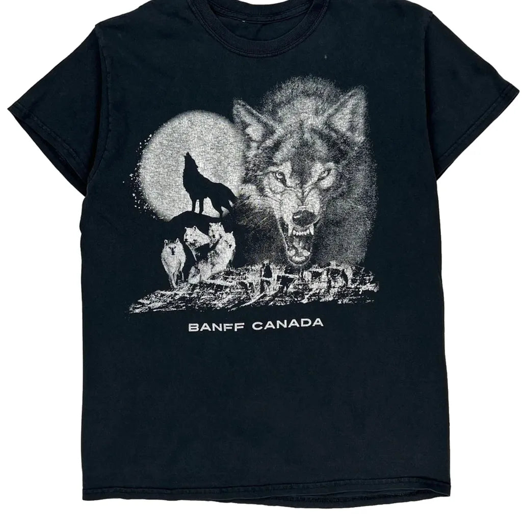Graphic T-Shirt With Wolf And Moon Design, Banff Canada Text