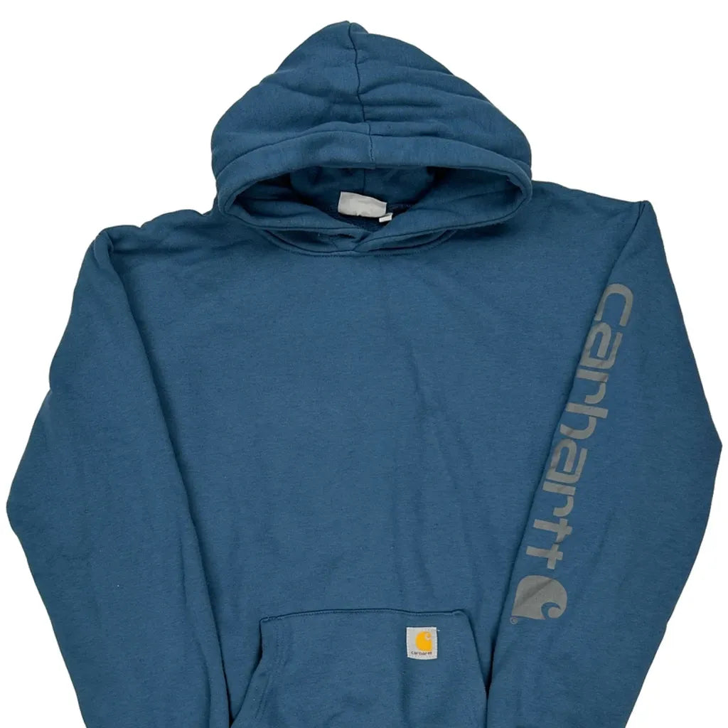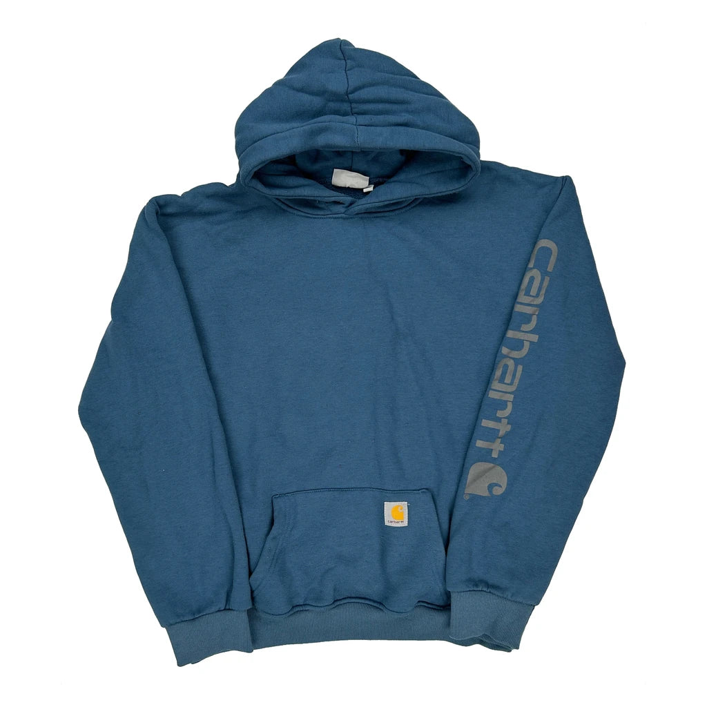 Carhartt Blue Hoodie With Logo On Sleeve, Very Good Condition
