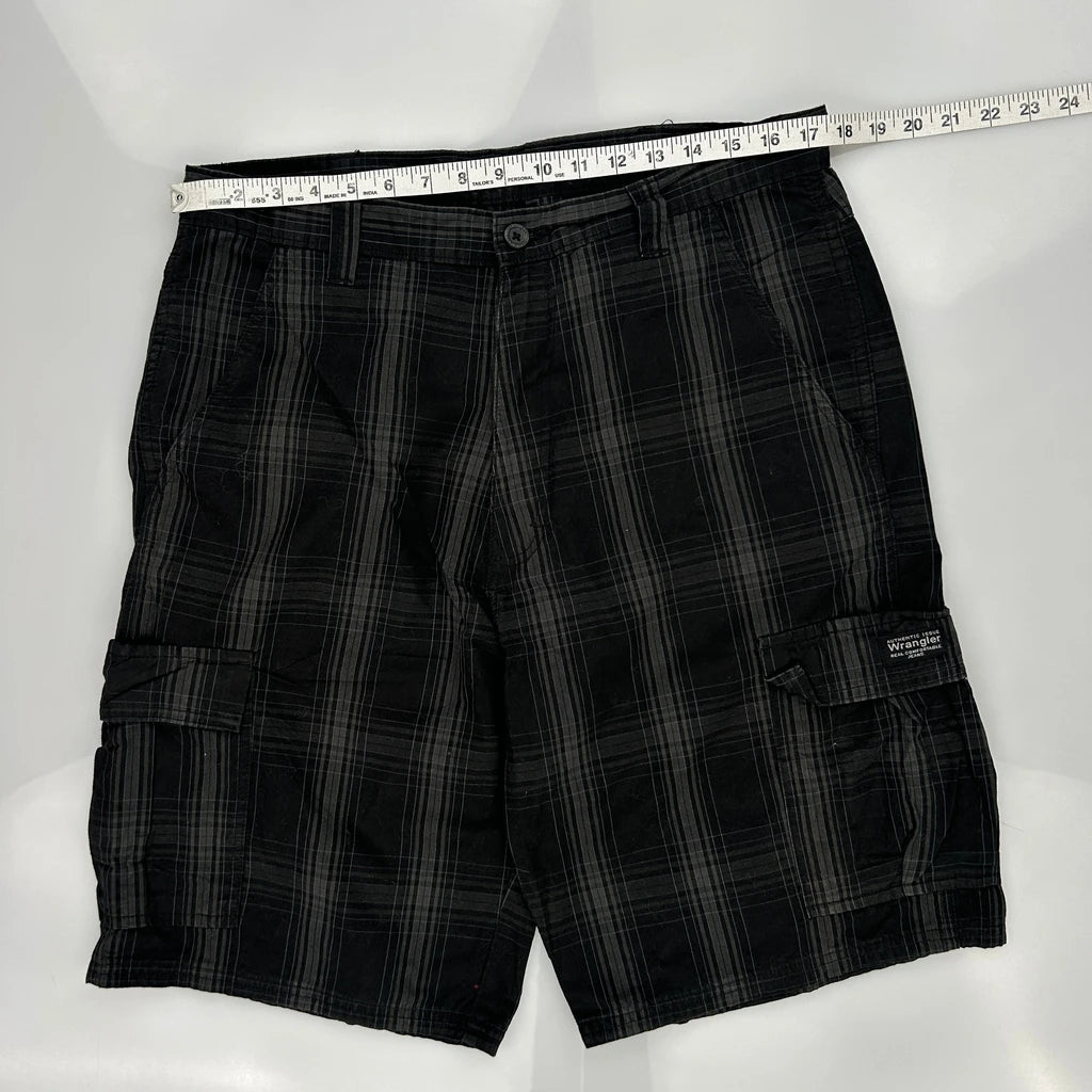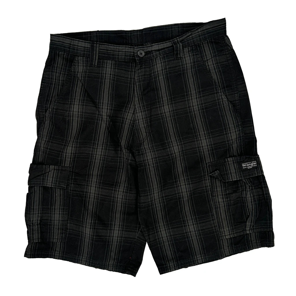 Wrangler Checked Cargo Shorts - 35W 10L Black Cotton