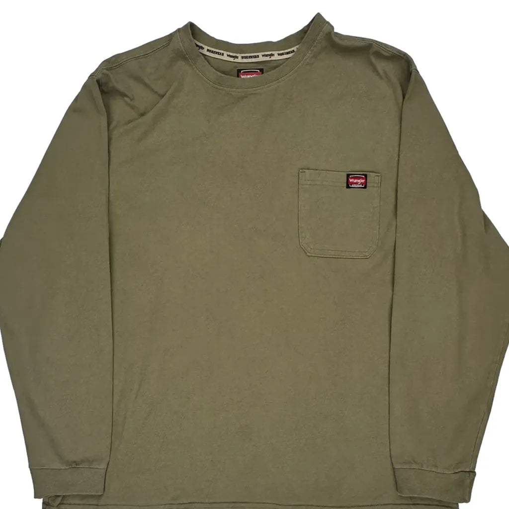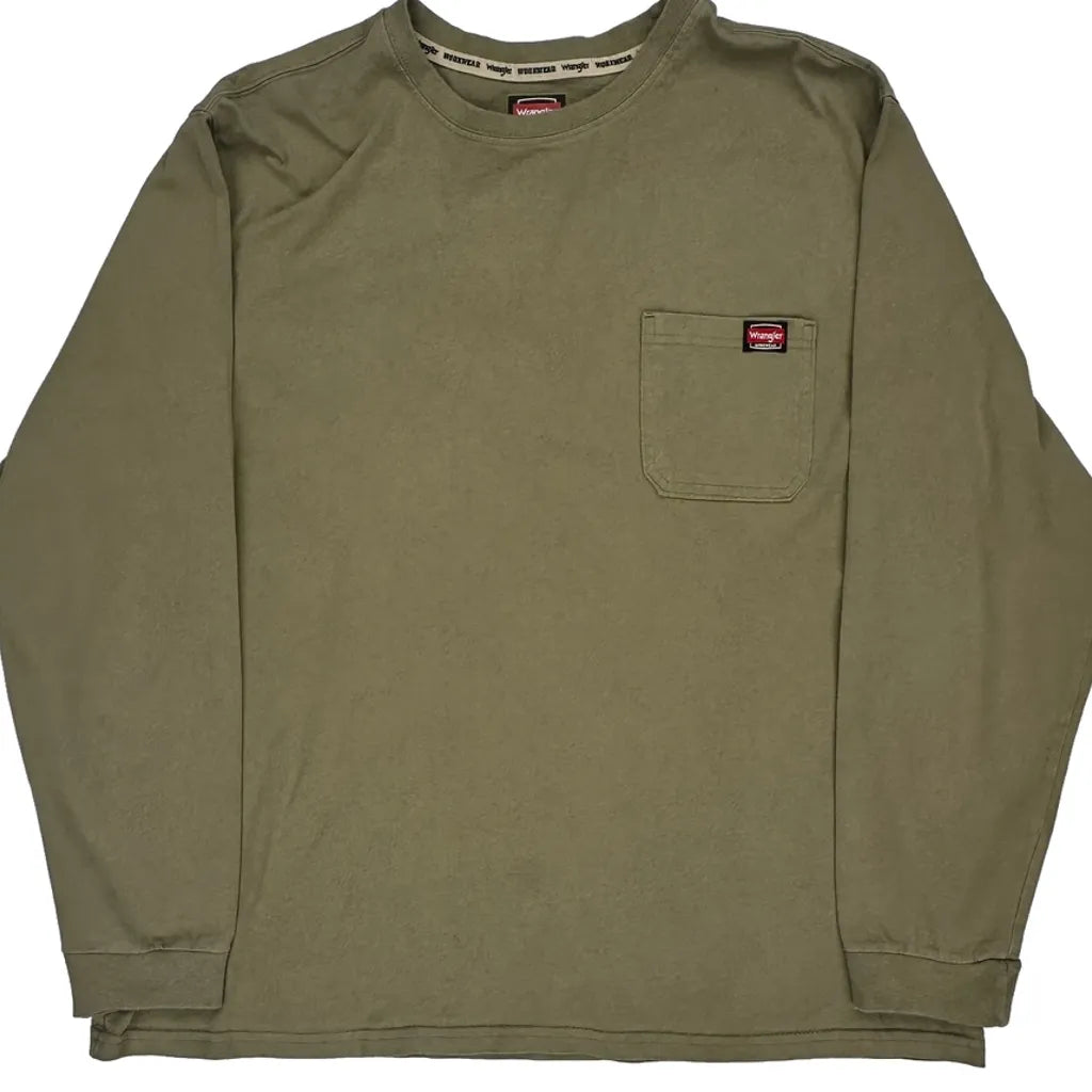 Wrangler Long Sleeve T-Shirt - 2XL Khaki Cotton