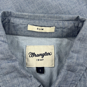 Wrangler Slim Shirt - Large Blue Cotton