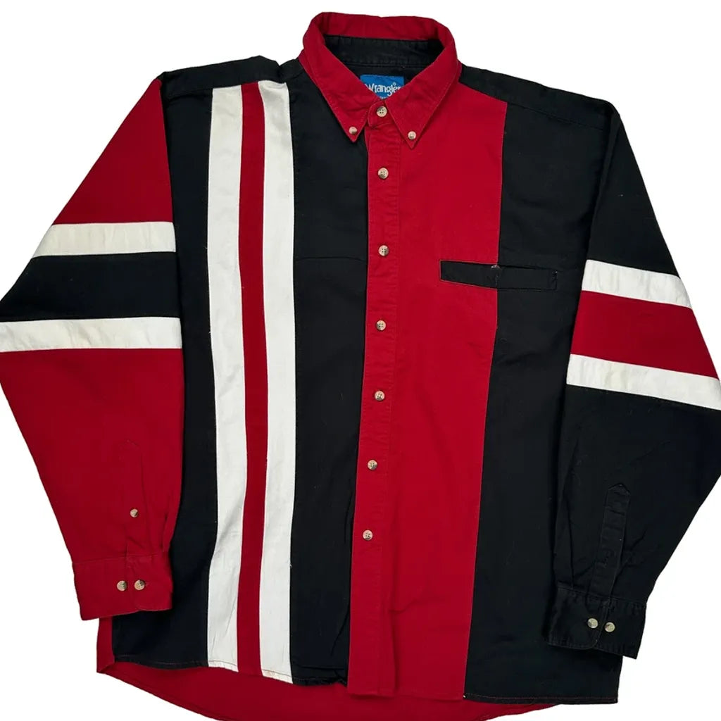 Wrangler Western Shirt With Bold Stripes And Color Block Design.